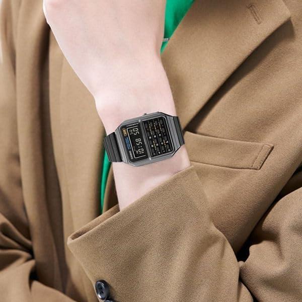 Casio CA500WEGG-1B Men’s Vintage Black Ion Plated Alarm Chronograph Calculator Watch