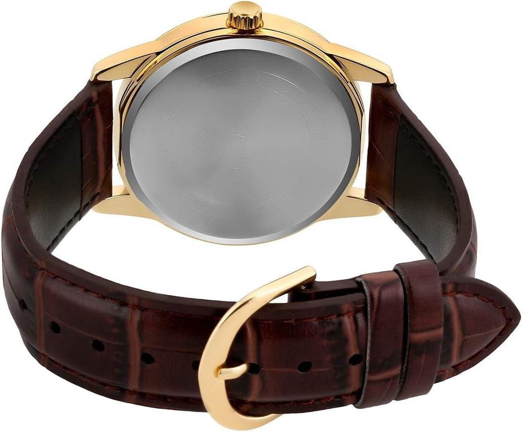 • Genuine leather band in a rich brown color for a comfortable fit.
