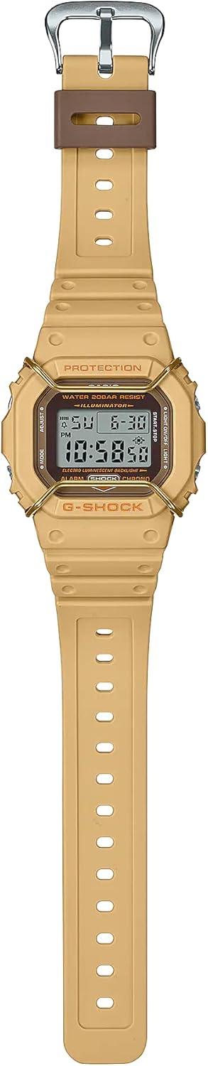 With a case diameter of 42.8mm and a thickness of 14.8mm, the G-Shock DW5600PT-5 fits comfortably on the wrist, making it suitable for everyday wear. The EL backlight with afterglow ensures you can read the time in low-light conditions, adding to its practicality.