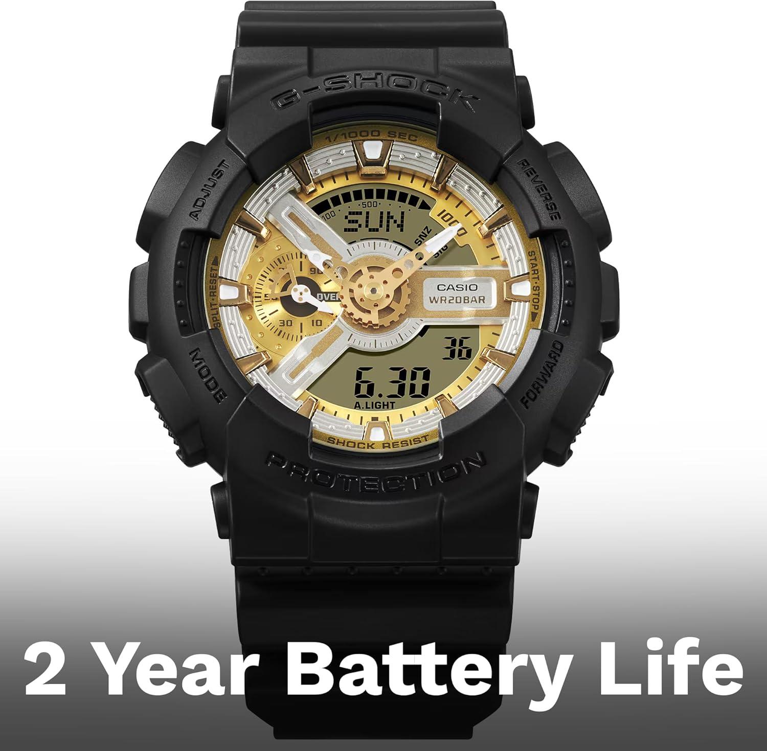 Built to withstand the rigors of daily wear, the GA-110CD-1A9CR boasts an impressive 200M water resistance, making it perfect for swimming, snorkeling, and even diving. The watch is powered by a reliable 1 LR44 battery, which is included and lasts up to three years, ensuring you stay on schedule without the hassle of frequent battery changes.