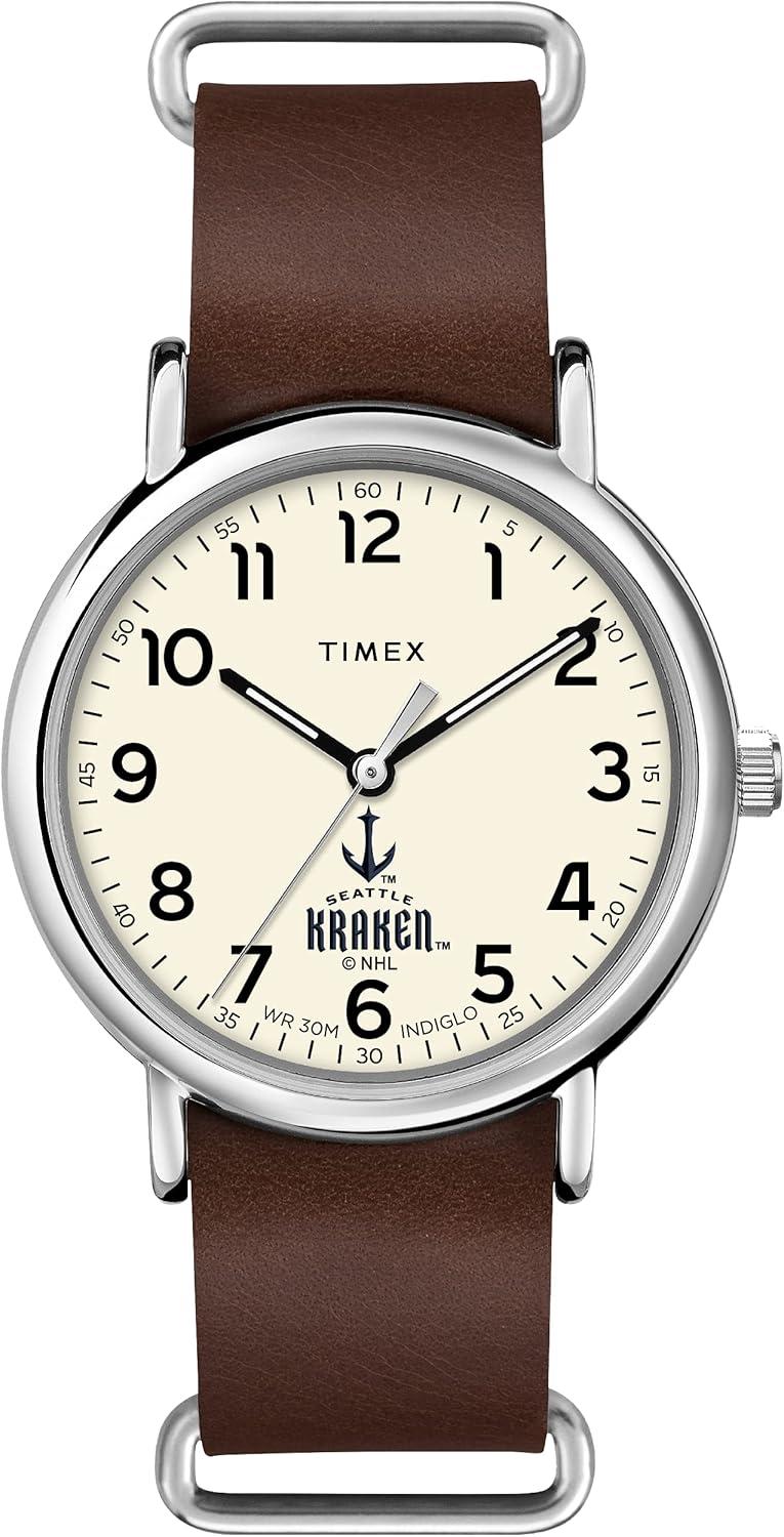 Whether you’re heading to a game, a casual outing, or simply want to express your team spirit, the Timex Men’s NHL Weekender 40mm Watch – Seattle Kraken is your perfect companion. With its blend of sporty elegance and practical features, this watch is a testament to Timex’s commitment to quality and style.