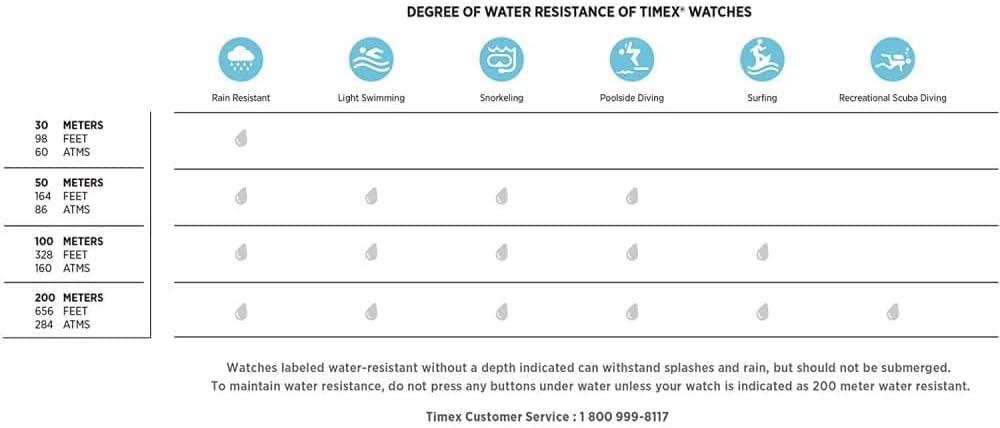 - Water resistant to 30 meters, suitable for splashes and brief immersion.
