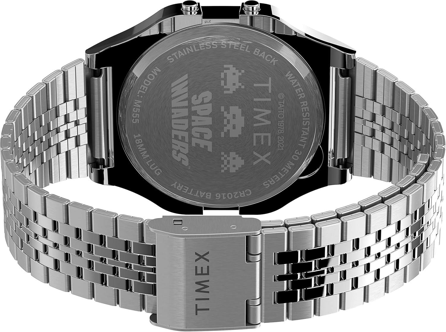 Specification: Timex T80 x Space Invaders 34mm Watch – Silver-Tone with Stainless Steel Bracelet