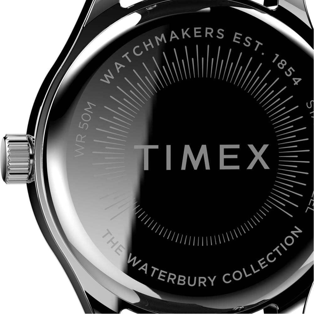 Specification: Timex Women’s Waterbury Traditional 34mm Watch – Silver-Tone Case White Dial with Black Leather Strap
