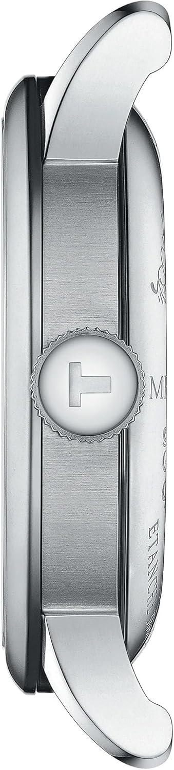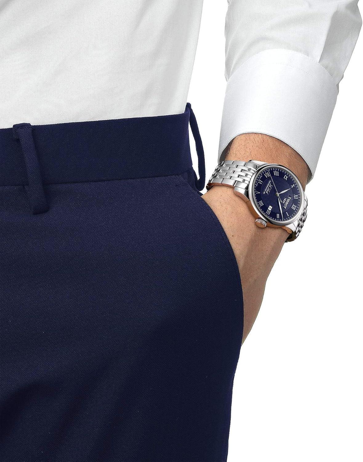 Discover the epitome of Swiss watchmaking with the Tissot Men’s Le Locle Powermatic 80. This exquisite timepiece, model number T0064071104300, is a testament to Tissot’s dedication to precision and style. Crafted in Switzerland, this watch is perfect for the modern man who appreciates both form and function. The 316L stainless steel case, with a diameter of 39.3mm and a thickness of 9.75mm, offers durability and a sleek, sophisticated look. The round case shape and the stationary stainless steel bezel frame a striking blue dial adorned with Roman numerals, providing a classic yet contemporary aesthetic.
